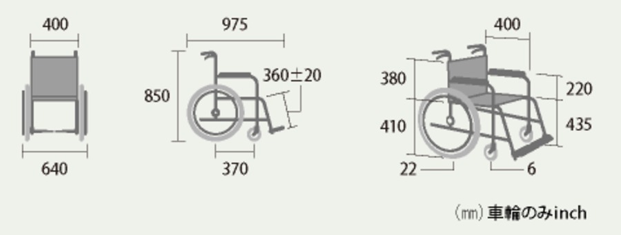 【介助式】(押してもらうタイプ)タイヤが小さく、コンパクトなので自動車などへの積込みが容易、狭い室内で小回りがききます。